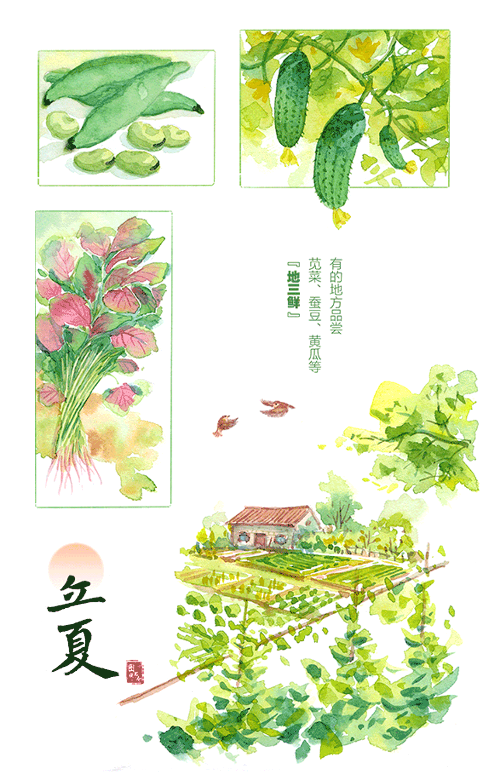 立夏有“三候”:“一候螻蟈鳴,二候蚯蚓出,三候王瓜生”。