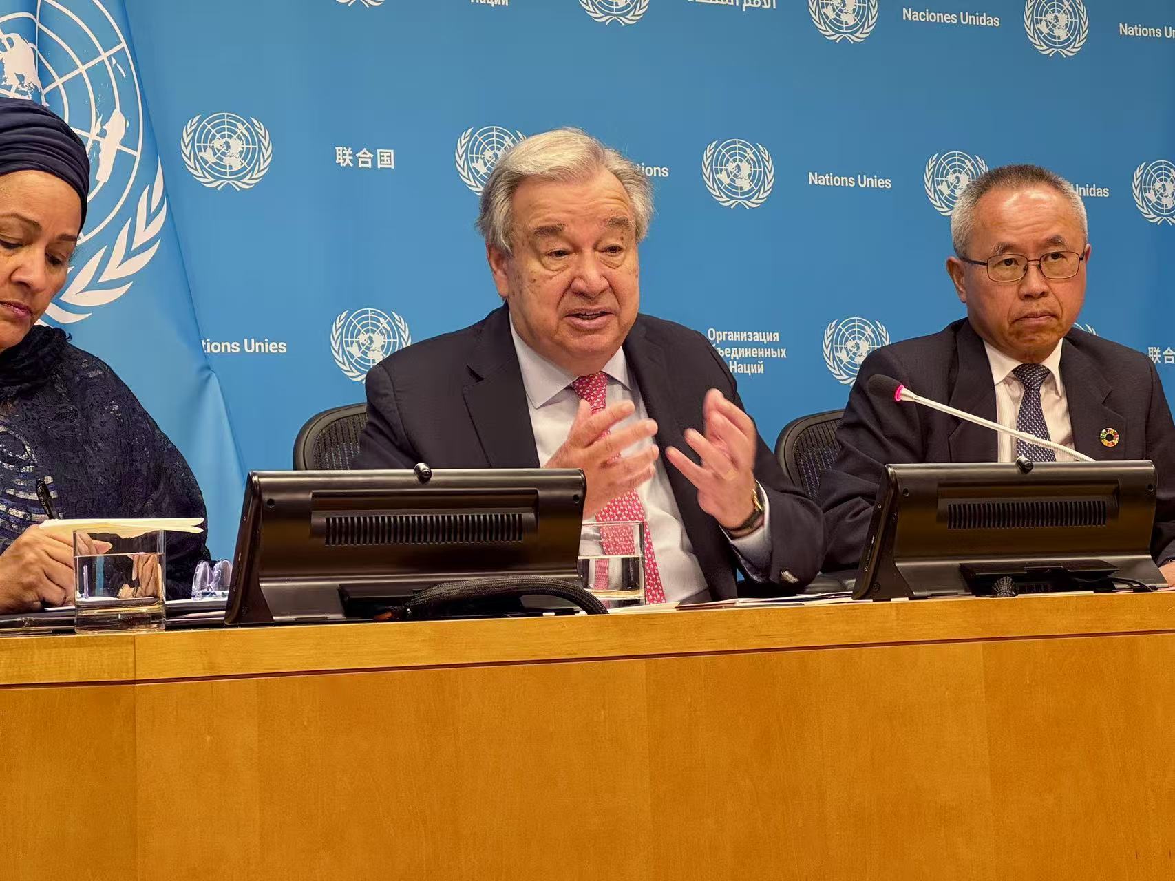 聯(lián)合國呼吁,各國應在糧食體系、能源獲取、數(shù)字化轉型、教育、就業(yè)與社會保障、氣候與生物多樣性六大領域加緊行動。(央視記者 徐德智)