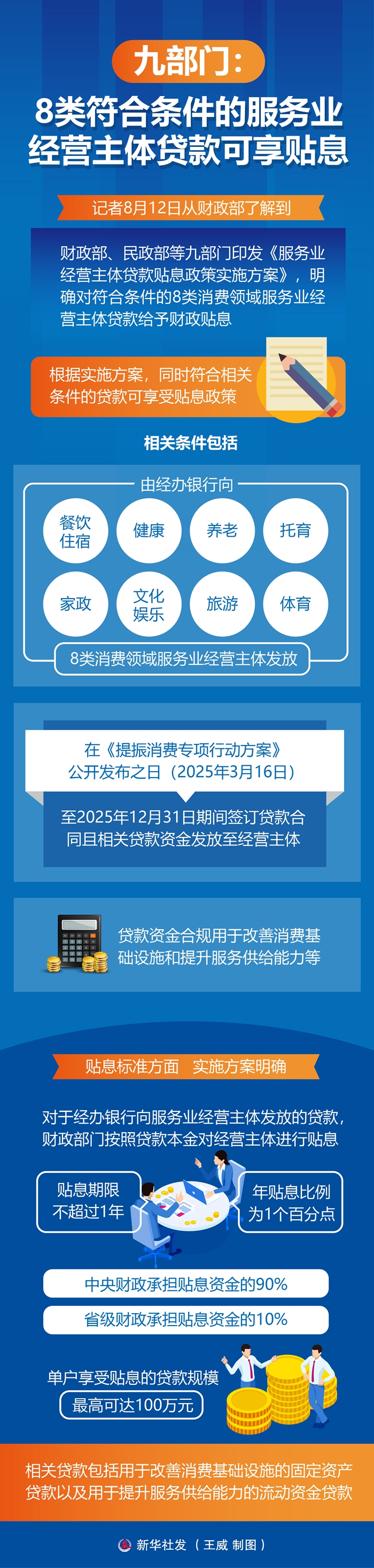 新華社北京8月12日電(記者申鋮)記者12日從財政部了解到,財政部、民政部等九部門印發(fā)《服務(wù)業(yè)經(jīng)營主體貸款貼息政策實(shí)施方案》,明確對符合條件的8類消費(fèi)領(lǐng)域服務(wù)業(yè)經(jīng)營主體貸款給予財政貼息。