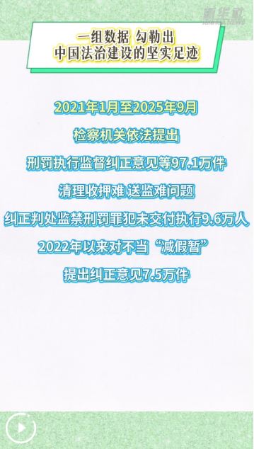 一組數(shù)據(jù),勾勒出中國法治建設(shè)的堅實(shí)足跡:2021年1月至2025年9月,檢察機(jī)關(guān)依法提出刑罰執(zhí)行監(jiān)督糾正意見等97.1萬件;清理收押難、送監(jiān)難問題,糾正判處監(jiān)禁刑罰罪犯未交付執(zhí)行9.6萬人;2022年以來對不當(dāng)“減假暫”提出糾正意見7.5萬件……