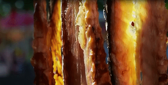 洗凈、抹鹽、放置、晾曬 …… 刺骨的風(fēng),溫暖的陽,灶火的煙 被一并封進(jìn)肉紋深處 待到佳節(jié)團(tuán)圓時(shí) 刀鋒落,咸香起 那是時(shí)光沉淀的味道 更是刻在心底 最溫情的記憶