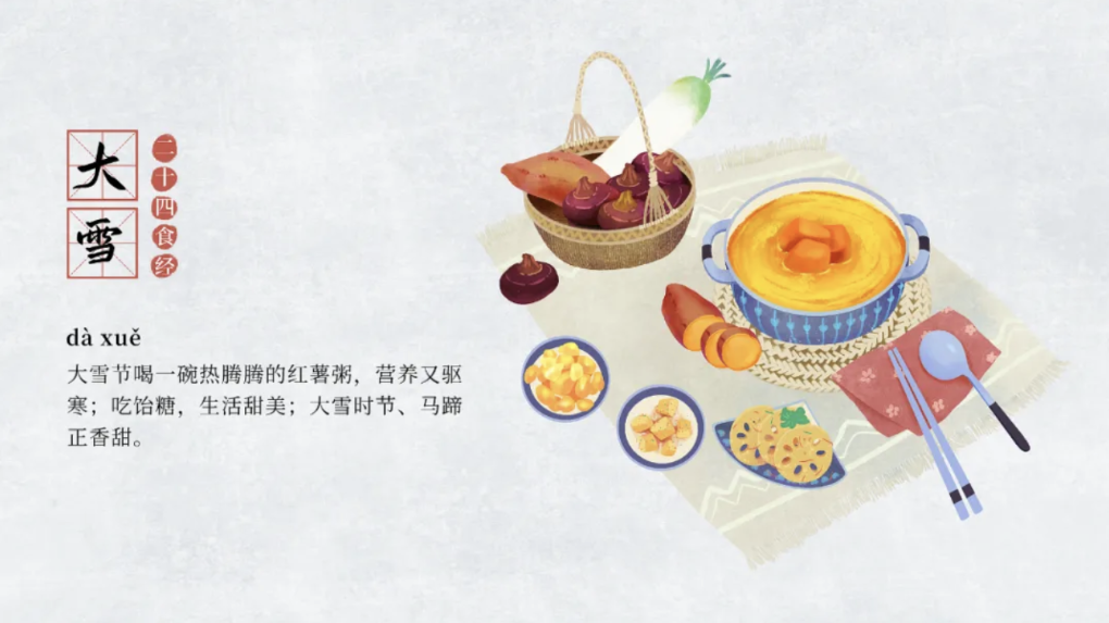 記憶中的寒冬 雖然清冽 但總有幾筆暖調(diào) “碌碡頂了門,光喝紅黏粥” 在北方 “大雪”節(jié)氣這天 一碗香噴噴的紅黏粥是過節(jié)標(biāo)配 粳米、小米、燕麥米、玉米糝 再搭配上香甜的紅薯 入口甜潤(rùn),米香撲鼻 冬日的寒氣 也被妥帖地封進(jìn)綿軟的碗底