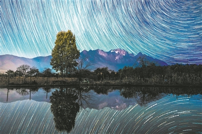 圖為十二月十三日凌晨在云南省麗江市白沙鎮(zhèn)拍攝的星空(堆棧照片)。