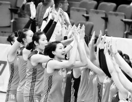 9月9日,中國女排隊(duì)員相互激勵(lì)。當(dāng)日,女排大冠軍杯比賽繼續(xù)在日本名古屋綜合體育館進(jìn)行。中國女排以3比0戰(zhàn)勝俄羅斯女排,取得了第四場勝利。