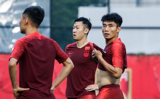 國(guó)足今日的訓(xùn)練氛圍很輕松。圖/Osports