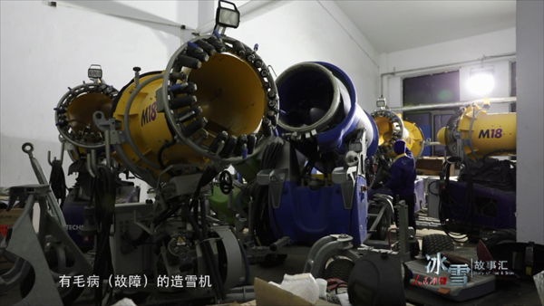 這是造雪機(jī)的維修庫,每年用完的造雪機(jī),哪有毛?。ü收希?,我們會(huì)自己進(jìn)行檢修。我們把這些有毛病(故障)的造雪機(jī),進(jìn)行修理,使它們來年為我們雪場更好地工作,這也是我的工作樂趣。