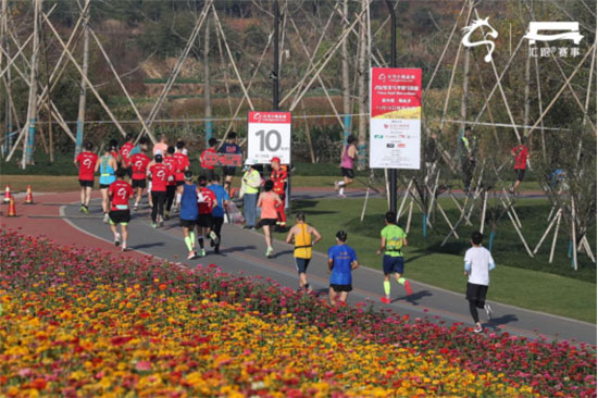 跑友穿梭在花海之中。組委會供圖