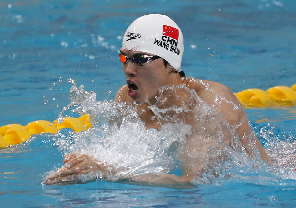 3月21日,汪順在男子400米個(gè)人混合泳決賽中。新華社記者 雒圓 攝