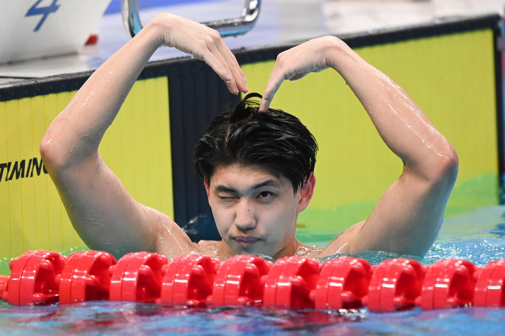 29歲的汪順在男子400米個(gè)人混合泳中展現(xiàn)出超強(qiáng)統(tǒng)治力,始終保持領(lǐng)先,以4分13秒96的成績(jī)奪冠。廣東隊(duì)陶冠男和山東16歲小將張展碩以4分17秒68并列亞軍。