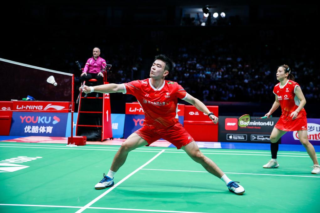 在率先進(jìn)行的混雙決賽中,頭號種子、中國組合鄭思維/黃雅瓊?cè)鎵褐评蠈κ猪n國組合徐承宰/蔡侑玎,以21:10、21:11輕松取勝,獲賽季第六冠。