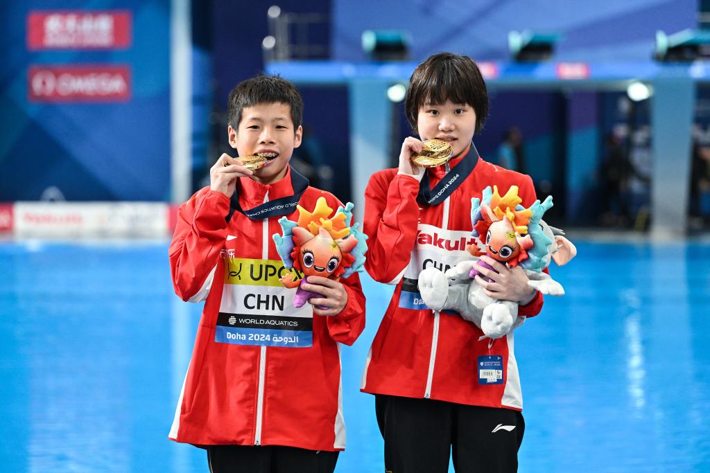 新華社多哈2月3日電(記者劉旸、周欣、孫哲)3日,在2024多哈游泳世錦賽第二個比賽日中,中國跳水組合張家齊/黃建杰奪得混雙10米臺冠軍,花樣游泳女單技術(shù)自選決賽中,徐匯妍摘得銅牌。