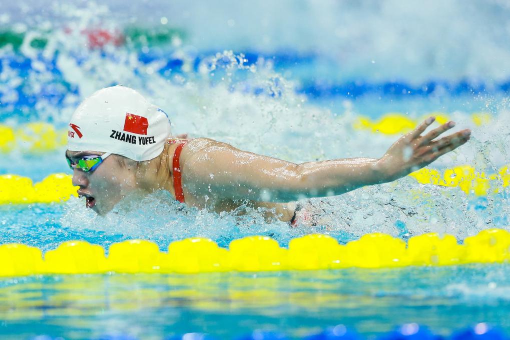 在女子200米蝶泳決賽的爭奪中,張雨霏一路領先以2分06秒40奪冠,陳露穎、龔真琦分獲銀牌和銅牌。