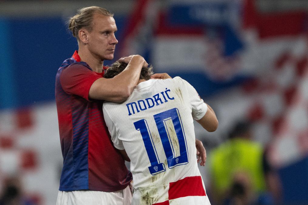 6月24日,克羅地亞隊(duì)球員莫德里奇(右)在比賽后接受隊(duì)友維達(dá)的安慰。新華社記者 肖藝九 攝 歐錦賽26日結(jié)束了小組賽階段爭奪,16強(qiáng)全部落位,8支球隊(duì)遺憾告別。其中,克羅地亞隊(duì)成為第一支被淘汰的傳統(tǒng)強(qiáng)隊(duì)。在2018、2022年世界杯上,堪稱中場大師的莫德里奇帶領(lǐng)“格子軍團(tuán)”連續(xù)打進(jìn)四強(qiáng)。但在德國的這個夏天,“黃金一代”走下巔峰,克羅地亞足壇呼喚新一代球員的崛起。 本屆歐錦賽小組賽階段,多支強(qiáng)隊(duì)未能展現(xiàn)出應(yīng)有的實(shí)力和觀賞性,一些場次令球迷昏昏欲睡。 在被稱為“死亡之組”的B組中,西班牙隊(duì)展現(xiàn)了強(qiáng)大的實(shí)力和斗志?!岸放J俊辈粌H踢出了賞心悅目的攻勢足球,還是24支參賽隊(duì)中唯一取得三連勝的球隊(duì)。傳球合理、線路清晰、“兩翼齊飛”、中鋒坐鎮(zhèn)的西班牙隊(duì),雖然星光不如當(dāng)年,但連續(xù)擊敗克羅地亞隊(duì)、衛(wèi)冕冠軍意大利隊(duì)和阿爾巴尼亞隊(duì)之后,有實(shí)力向冠軍發(fā)起沖擊。