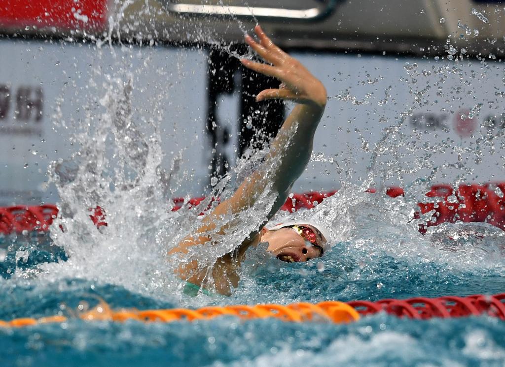 3月18日,江西隊(duì)選手程玉潔在女子100米自由泳決賽中,最終她以53秒91的成績獲得冠軍。新華社記者 李紫恒 攝
