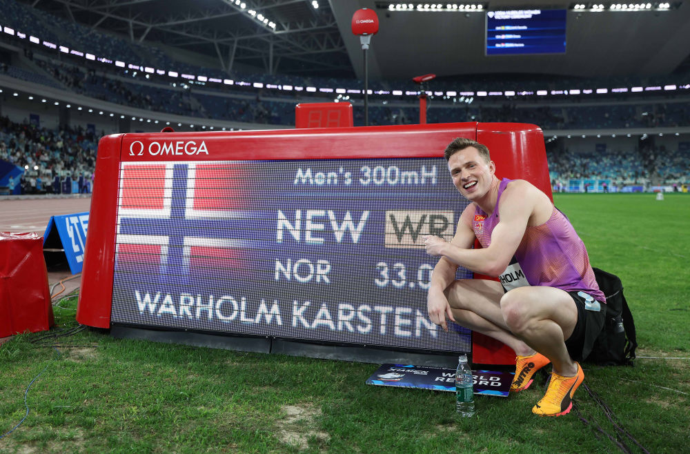 今年3月,世界田聯(lián)宣布300米欄為正式比賽項(xiàng)目并納入官方紀(jì)錄體系。在當(dāng)日廈門(mén)站比賽中,瓦霍爾姆一馬當(dāng)先,率先撞線,超越了2021年由他本人創(chuàng)造的男子300米欄世界最佳成績(jī)(33秒26)。