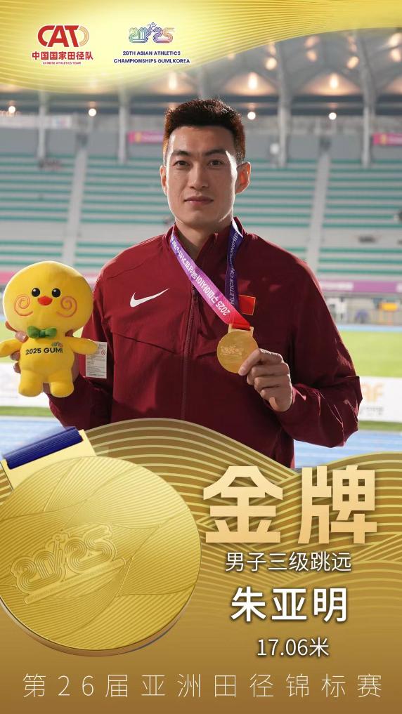 男子三級跳遠比賽中,東京奧運會銀牌得主朱亞明第一輪就跳出17米06的成績,奠定勝局。他也是全場比賽唯一突破17米的運動員,此后第二輪中朱亞明還跳出過17米01。獲得亞軍的印度選手奇斯拉韋爾成績是16米90。