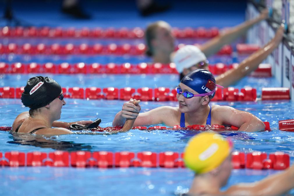 同為中長(zhǎng)距離自由泳女將,對(duì)23歲的李冰潔來(lái)說(shuō),28歲的萊德茨基是她一直以來(lái)的榜樣和對(duì)手?!八俏覐男【拖氤降娜恕!崩畋鶟嵳f(shuō),“我記得2017年時(shí)我就說(shuō)過(guò)想超越她,她一直以來(lái)在我心里都是一個(gè)非常偉大的運(yùn)動(dòng)員,我也從她身上學(xué)到了很多東西,今天戰(zhàn)勝了她,我感到非常感慨,感覺(jué)(戰(zhàn)勝萊德茨基)這么多年來(lái)是我心里的一個(gè)掛念。”