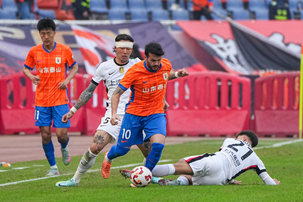 本輪比賽開始前,排名榜首的上海海港僅領(lǐng)先第二名成都蓉城2分。上海海港本輪客場對陣山東泰山,開場不久由李新翔打進(jìn)一球,取得領(lǐng)先。但隨后山東泰山迅速調(diào)整,并逐漸掌握主動(dòng)。第41分鐘,山東泰山外援澤卡反擊中突破送出斜傳,卡扎伊什維利跟進(jìn)殺入禁區(qū)低射,將比分扳為1:1。