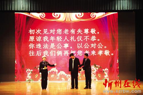 1月27日至29日,偏關(guān)縣公安局交警大隊(duì)交通安全文藝宣傳隊(duì)在隊(duì)長(zhǎng)們的帶領(lǐng)下,先后走進(jìn)市實(shí)驗(yàn)中學(xué)、市客運(yùn)中心、國(guó)家電網(wǎng)忻州供電分公司進(jìn)行了三場(chǎng)演出,用自編自導(dǎo)自演、群眾喜聞樂(lè)見(jiàn)的“漫翰調(diào)”、“二人臺(tái)”、北路梆子、民歌等一系列極具地域文化特色的地方小戲、說(shuō)唱歌舞等曲藝形式進(jìn)行宣傳演出,贏(yíng)得滿(mǎn)堂喝彩,場(chǎng)場(chǎng)掌聲雷動(dòng)。作為春節(jié)回家路上的一道文化盛宴,這次春節(jié)前的平安出行警示教育“送安全下鄉(xiāng)”巡演是我市公安交警精心策劃、編排的春運(yùn)交通安全宣傳行動(dòng)之一。28日,市客運(yùn)中心人頭攢動(dòng),熙熙攘攘,大廳外懸掛的橫幅標(biāo)語(yǔ)“守護(hù)您的平安出行,保障道路安全暢通是每一位交警的神圣職責(zé)!”格外醒目。候車(chē)大廳里,暖意融融,市公安局交警支隊(duì)組織的春運(yùn)交通安全文藝演出正在進(jìn)行,交警版的民間小調(diào)《拜大年》、小品《警鐘聲聲》、雙簧《二愣子》等節(jié)目令人賞心悅目、捧腹不止。在歡笑之余,提醒和教育廣大群眾自覺(jué)抵制不文明、不安全交通行為,觀(guān)看演出的旅客和客車(chē)司機(jī)紛紛感慨,這樣的宣傳教育生動(dòng)形象,人人愛(ài)看且耐人尋味,警示作用很大。