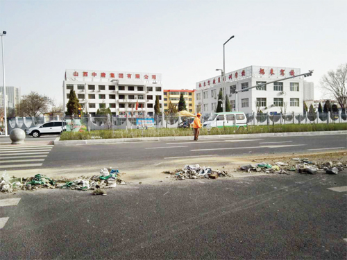 4月1日,在我市開發(fā)區(qū)九源街與新建路十字路口,路面上因被拋灑了大量建筑垃圾而污染,給過往的車輛帶來安全隱患。