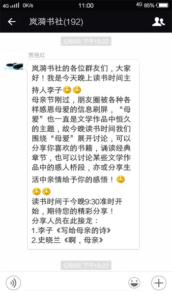 “交流、集體讀書,都是為了讓大家重新找回讀書的感覺,如果大家都讀起書來,我們就達到基本的目的了。所以在讀書這件事上,從形式到內(nèi)容都不做太多要求。只要讀起書來,參與進來就好,在讀書會讓大家感到的不是約束,而是心靈的放松。可以這么說,讓讀書回歸到讀書本身,就是生命成長和完善的需要。”田沁梅由衷地說。