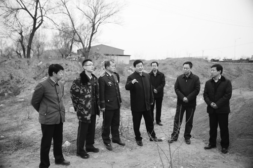 溫建軍市長(左四)帶領相關部門負責人現(xiàn)場辦公。