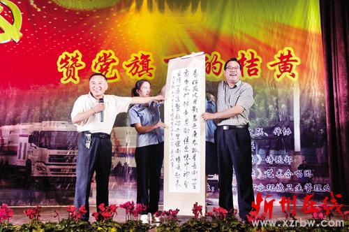 本報訊 7月3日晚8時,忻府區(qū)文聯(lián)、忻府區(qū)作家協(xié)會和遺山詩社在忻州市住建局禮堂共同舉辦了一場大型詩歌吟誦演唱會,用詩的語言、歌的韻律抒發(fā)了對黨的祝福和對環(huán)衛(wèi)工人的贊美。7月1日是黨的生日,在此之際,他們用詩歌表達(dá)對黨的熱愛,也表達(dá)對在黨旗下默默付出的勞動者們的敬意。