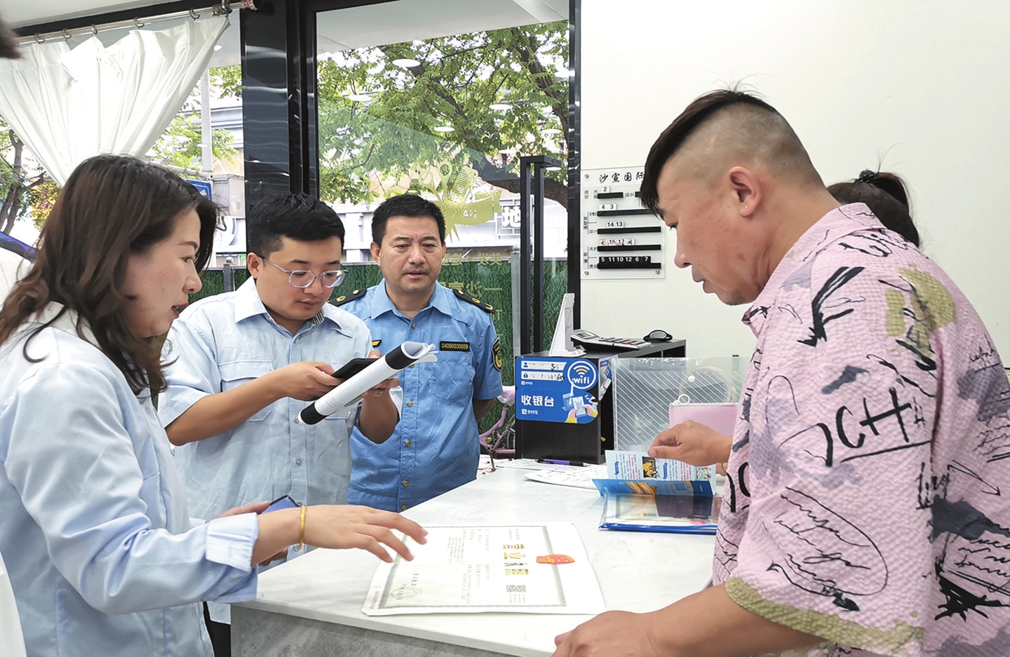 今年6月,市市場(chǎng)監(jiān)管局工作人員向商戶解讀“惠商保”理賠范圍與申報(bào)流程。