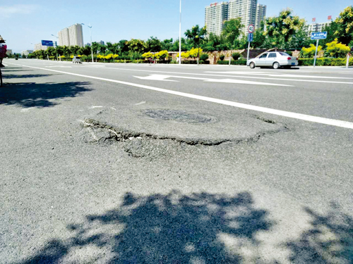 城區(qū)雁門大道南街與團結(jié)中街北巷交叉路口,有一下水井蓋周邊嚴(yán)重破損,多處裂縫,存在安全隱患。希望有關(guān)部門盡快予以修補。張林全 攝于8月24日