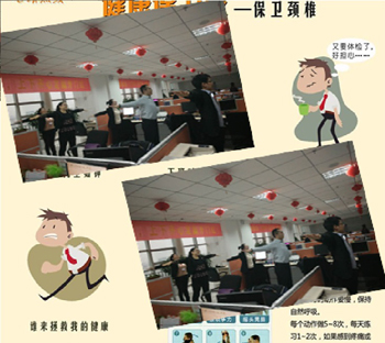 1月7日,忻州中支組織職場員工起身開始工間頸椎保健操,工作之余利用10分鐘時間調(diào)節(jié)身心,以更加充沛的體力投入到開門紅戰(zhàn)役中。 開門紅戰(zhàn)役打響,全員全身心投入,同時對職場內(nèi)員工的身體健康尤其是頸椎健康更是極大挑戰(zhàn)。中支綜管部門及時提醒辦公室內(nèi)的上班族,應(yīng)該保護頸椎健康,提示半小時后應(yīng)該起身活動一下,用頭寫“米”字,并適時組織員工停下手中的工作,打開電視機,集中做好工間勁椎操。保護頸椎,保護自己,服務(wù)公司,以充沛的體能服務(wù)開門紅戰(zhàn)役。 (責(zé)任編輯:李冬梅) |
