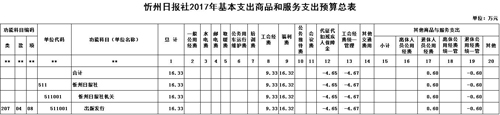 忻州日報社2017年度部門預(yù)算及“三公”經(jīng)費(fèi)預(yù)算公開情況