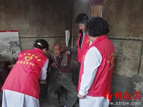 志愿者們不僅給老人們送去了生活品,同時(shí)還利用自己醫(yī)護(hù)人員的優(yōu)勢(shì)為他們做了簡(jiǎn)單的身體檢查,為老人們提供了許多健康咨詢。