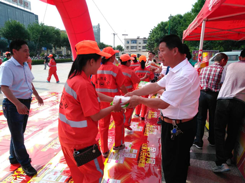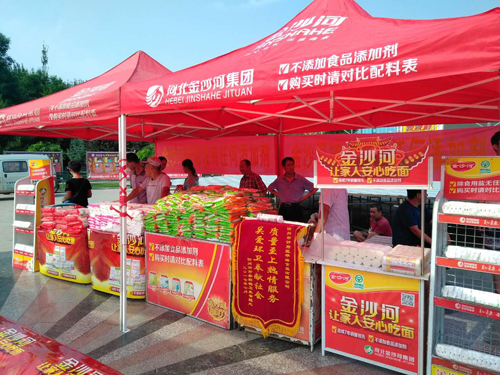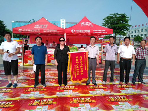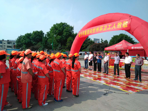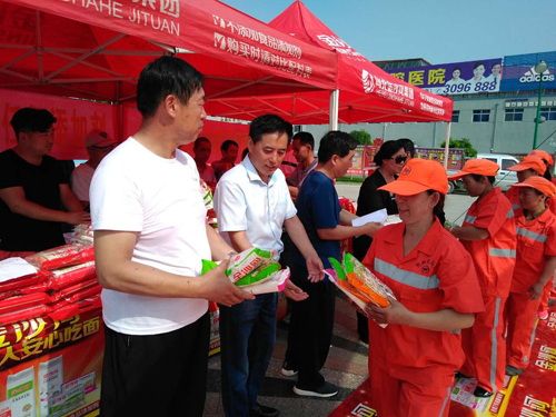 本網(wǎng)訊 7月16日上午,忻府區(qū)華琳食品有限公司在體育廣場舉辦“金沙河集團向忻州環(huán)衛(wèi)工人致敬”的慰問活動。向忻州約1300名環(huán)衛(wèi)工人捐贈“金沙河”牌掛面、刀削面等食品,捐贈價值達上萬元。
