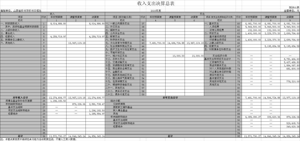 2016年度部門決算報(bào)表