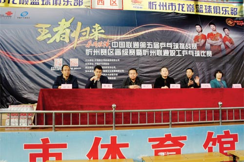 中國聯(lián)通乒乓球挑戰(zhàn)賽前期已成功舉辦四屆,全國共有72000 人參加。今年的賽事以“乒乓在沃,王者歸來”為活動主題,攜手國乒傾情回饋熱愛運動的廣大聯(lián)通用戶,為聯(lián)通客戶提供與國手親密互動的專享契機。本屆比賽得到了中國乒乓球協(xié)會的大力支持,由中國聯(lián)合網(wǎng)絡(luò)通信有限公司山西省分公司主辦,中國聯(lián)合網(wǎng)絡(luò)通信有限公司忻州市分公司承辦,北京中廣賽博文化發(fā)展有限公司協(xié)辦。