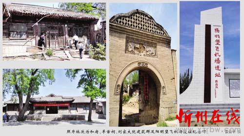 2000多年來,陽明堡歷經(jīng)無數(shù)次戰(zhàn)火、自然災(zāi)害及人為破壞,如今輝煌時期的風(fēng)貌早已不存在,但畢竟還是留下了一些歷史遺存,著名的有廣武古城、羊舌祠、劉家祠堂、和府、馬站戲樓、李克用墓、白人巖以及陽明堡飛機(jī)場遺址紀(jì)念碑等,并扛起中國歷史文化名鎮(zhèn)的名聲。