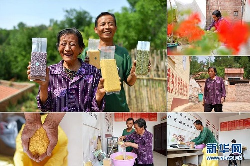 張成華,女,1949年出生,山西省長治市武鄉(xiāng)縣嶺頭村人。近年來,嶺頭村在縣里有關部門的扶持下,對村民開展電商培訓。村民們嘗試著在手機上“開店”,把小米、核桃、綠豆等農產品在網(wǎng)絡上售賣。張成華的兒子魏寶玉開了網(wǎng)店后,自家的農產品在網(wǎng)上銷售良好,家庭收入明顯增加。 左上:張成華(前)和兒子魏寶玉展示自家種的農產品;右上:張成華在家中院子里收拾;右中:張成華走在村里的路上;右下:張成華的兒子魏寶玉將準備發(fā)貨的農產品進行稱重;下中:張成華(前)將小米裝袋;下左:張成華在查看小米質量(拼版照片,6月12日攝)。 地處晉東南的山西省長治市,位于由太行山、太岳山環(huán)繞而成的上黨盆地中。在群山中、崖壁上,許多村莊自然條件惡劣,基礎設施落后,脫貧致富是大山深處人們的迫切心愿。 近年來,一場場脫貧攻堅戰(zhàn),在一個個深山村打響。政府全力探索脫貧路徑的同時,山區(qū)百姓因地制宜,靠自己的雙手和智慧走上致富路,交出了一份扎實的脫貧答卷。 記者在太行山、太岳山一路尋訪,記錄下多位70歲老人的生活。這些共和國的同齡人,親歷了山鄉(xiāng)的巨變,見證著長治山區(qū)脫貧攻堅偉大工程的一步步推進。 新華社記者 詹彥 攝