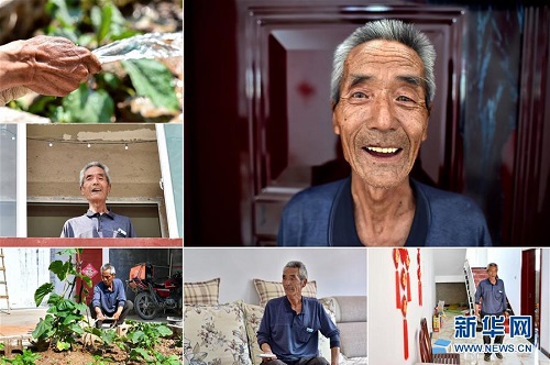 劉中秀,男,1949年出生,山西省長治市潞城區(qū)西北村人,全家5口人靠種植玉米為生,收入微薄。2011年,劉中秀因一次意外而致殘,生活更加貧困。被列入建檔立卡貧困戶后,劉中秀在村干部的幫助下開起了農(nóng)家樂,他的子女參與了貧困技能培訓(xùn)并順利就業(yè)。 右上:劉中秀肖像;左上:劉中秀在給植物澆水;左中:劉中秀站在新房的二樓看向窗外;左下:劉中秀在院子里給植物澆水;下中:劉中秀在新房里看電視;下右:劉中秀在新房里(拼版照片,6月12日攝)。 地處晉東南的山西省長治市,位于由太行山、太岳山環(huán)繞而成的上黨盆地中。在群山中、崖壁上,許多村莊自然條件惡劣,基礎(chǔ)設(shè)施落后,脫貧致富是大山深處人們的迫切心愿。 近年來,一場場脫貧攻堅戰(zhàn),在一個個深山村打響。政府全力探索脫貧路徑的同時,山區(qū)百姓因地制宜,靠自己的雙手和智慧走上致富路,交出了一份扎實的脫貧答卷。 記者在太行山、太岳山一路尋訪,記錄下多位70歲老人的生活。這些共和國的同齡人,親歷了山鄉(xiāng)的巨變,見證著長治山區(qū)脫貧攻堅偉大工程的一步步推進(jìn)。 新華社記者 曹陽 攝