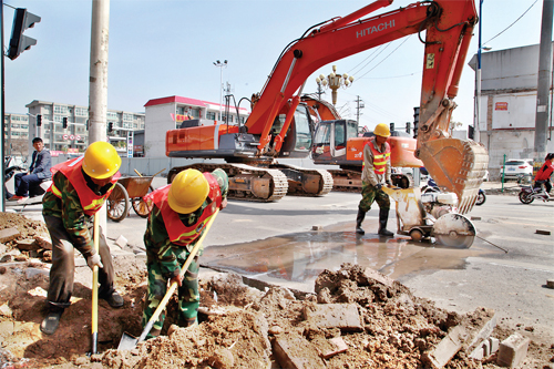 圖為勝利街改造工程開(kāi)挖道路管線探槽現(xiàn)場(chǎng)。梁春霞 攝