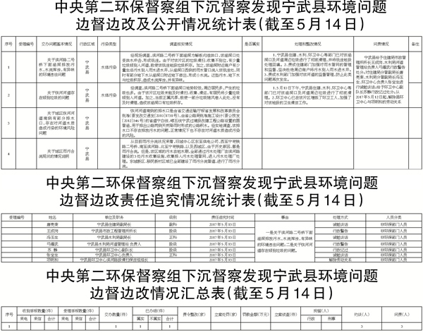 2017年5月10日上午,中央第二環(huán)保督察組副組長、環(huán)保部副部長黃潤秋同志在我市現(xiàn)場督察調(diào)研時,指出寧武縣存在環(huán)境違法問題2個、環(huán)境風(fēng)險問題1個、要求報告的情況1個。