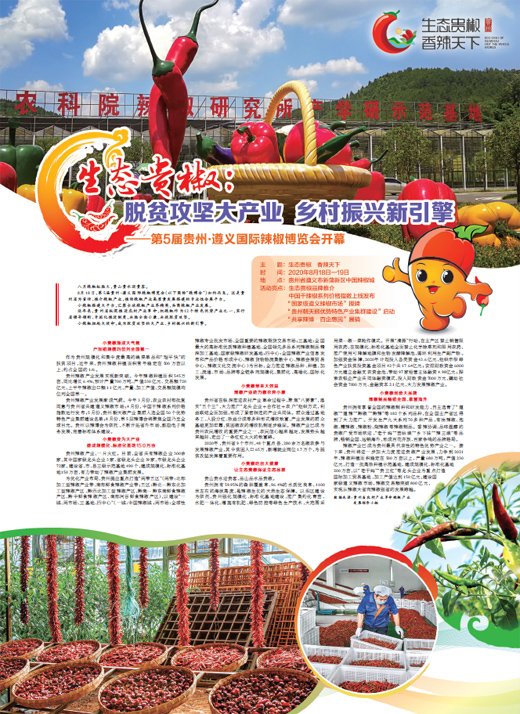 近年來,貴州省縱深推進農村產業(yè)革命,把辣椒作為12個特色優(yōu)勢產業(yè)之一,實行省領導領銜、專班化推進制度,決勝全面小康、決戰(zhàn)脫貧攻堅。