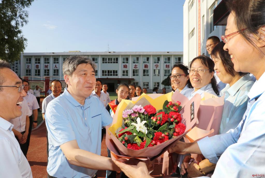 每到一處,朱曉東都向教師們致以節(jié)日問候。長(zhǎng)征小學(xué)西校區(qū)是一所高標(biāo)準(zhǔn)規(guī)劃、高水平建設(shè)的新建學(xué)校,今年秋季學(xué)期投入使用。朱曉東察看電子圖書閱覽等教學(xué)新設(shè)施,了解學(xué)校開設(shè)的書法、歌唱、手工、足球、乒乓球、跆拳道、機(jī)器人組裝等特色教育課程,隨機(jī)檢查學(xué)生飲用水機(jī)具,向從基層選拔聘用的優(yōu)秀教師代表贈(zèng)送書籍,勉勵(lì)大家珍惜崗位,肩負(fù)起時(shí)代賦予的重任,全心全意培養(yǎng)好人才。具有40多年歷史的忻州六中辦學(xué)底蘊(yùn)厚重,近年來與時(shí)俱進(jìn)提升教學(xué)能力。朱曉東實(shí)地了解學(xué)校發(fā)展情況后,一一為教師代表獻(xiàn)上鮮花,感謝大家辛勤付出,希望學(xué)校越辦越好,讓孩子們?cè)趯W(xué)校有更多收獲。忻州高級(jí)中學(xué)教學(xué)設(shè)施先進(jìn),教師隊(duì)伍素質(zhì)高、經(jīng)驗(yàn)豐富,今年學(xué)校畢業(yè)班高考再次取得好成績(jī)。朱曉東詳細(xì)了解學(xué)校歷史和往屆學(xué)生成就,鼓勵(lì)教師們放長(zhǎng)眼光,對(duì)照更高標(biāo)準(zhǔn)繼續(xù)努力,為忻州增光添彩。