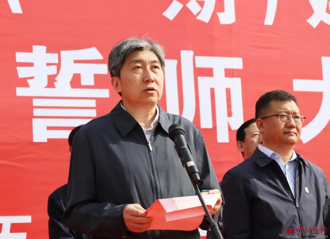 朱曉東出席活動并提出工作要求。范濤 攝 朱曉東強調(diào),忻州師院新校區(qū)建設(shè)承載著幾代忻師人的夢想和希望,承載著全市人民的重托,市直各職能部門要牢固樹立大局意識,充分發(fā)揮職能作用,繼續(xù)為項目建設(shè)提供優(yōu)質(zhì)服務(wù);山西建投、山西建工要加大對項目建設(shè)的支持力度和督促監(jiān)督力度;項目公司要按照上報總指揮部的工期節(jié)點和承諾,科學(xué)安排,合理組織,以主人翁的責(zé)任感和使命感動員全體參建人員再鼓干勁、再聚合力,堅決兌現(xiàn)百日攻堅既定目標(biāo)。當(dāng)前的主要任務(wù)是搞好裝飾裝修和風(fēng)格展現(xiàn),一定要在質(zhì)量上下功夫,在細節(jié)上出效果,在整體協(xié)調(diào)上見精品,確保新校區(qū)建設(shè)項目成為忻州公共服務(wù)和高校發(fā)展史上的精品工程、亮點工程和德政工程。隨著7月1日學(xué)生公寓交付、8月1日教學(xué)樓交付這兩個節(jié)點的臨近,忻州師院要進一步制定周密預(yù)案,加強與項目公司溝通對接,確保搬遷工作有序完成。新校區(qū)搬遷僅僅是一個起點,實現(xiàn)師院的長久可持續(xù)發(fā)展和穩(wěn)定運行才是關(guān)鍵。百日攻堅既有工期節(jié)點和按期搬遷的要求,更有如期運營的要求。誓師大會后,項目公司要盡快籌劃學(xué)生食堂、后勤保障、校園綠化等事項,不僅要把師院建設(shè)好,更要讓師院運營好、發(fā)展好,真正把忻州師院新校區(qū)打造成忻州的教育基地、創(chuàng)新高地,在奮力蹚出全面轉(zhuǎn)型的忻州之路中發(fā)揮新的更大的作用,為建設(shè)宜居宜業(yè)宜創(chuàng)宜游的創(chuàng)新型田園城市作出新的更大的貢獻。