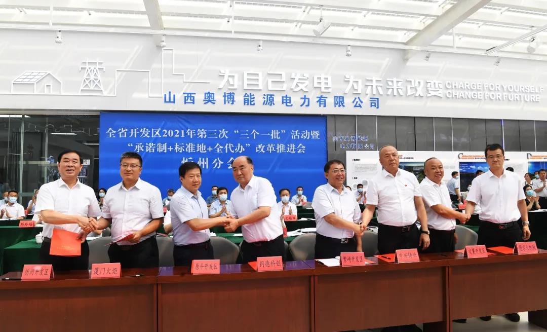 本報(bào)訊 (記者楊峰雷)7月16日,全省開(kāi)發(fā)區(qū)2021年第三次項(xiàng)目集中簽約一批、開(kāi)工一批、投產(chǎn)一批“三個(gè)一批”活動(dòng)暨“承諾制+標(biāo)準(zhǔn)地+全代辦”改革推進(jìn)會(huì)通過(guò)視頻連線(xiàn)方式舉行。我市作為分會(huì)場(chǎng)同步舉行相關(guān)活動(dòng),市委書(shū)記鄭連生在忻州分會(huì)場(chǎng)出席,市委副書(shū)記、市長(zhǎng)朱曉東主持忻州分會(huì)場(chǎng)簽約儀式。市委常委、秘書(shū)長(zhǎng)裴峰,副市長(zhǎng)范建民在忻州分會(huì)場(chǎng)出席。