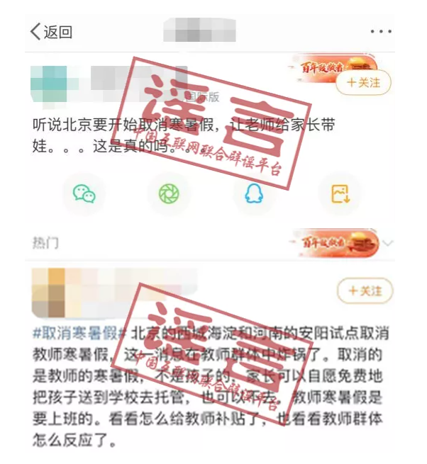 中國互聯(lián)網(wǎng)聯(lián)合辟謠平臺第一時(shí)間向教育部相關(guān)部門求證,確認(rèn)“北京、河南試點(diǎn)取消教師寒暑假”為不實(shí)消息。