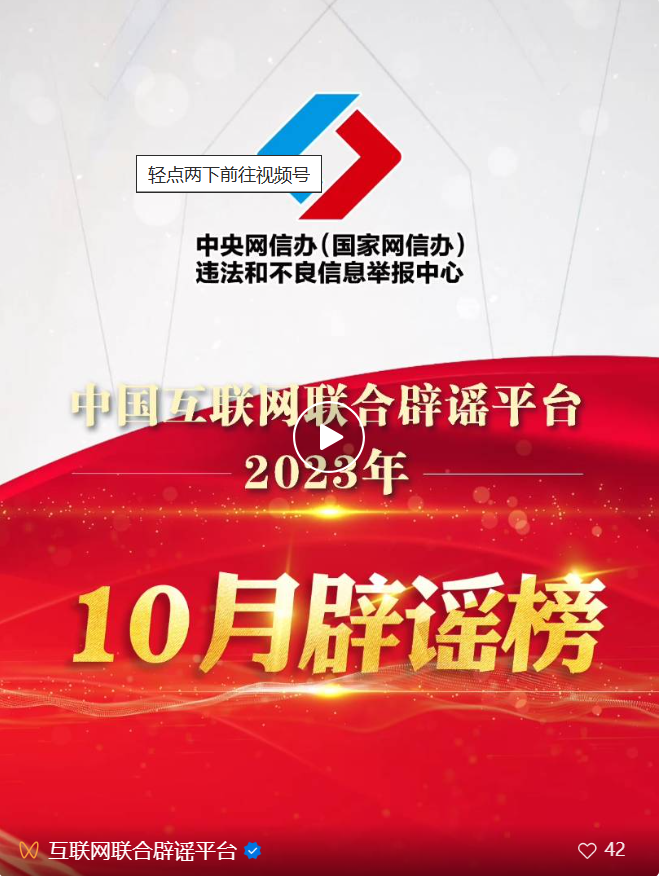 | 打擊網(wǎng)絡(luò)謠言 共建清朗家園 中國(guó)互聯(lián)網(wǎng)聯(lián)合辟謠平臺(tái)2023年10月辟謠榜 |