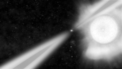 天文學(xué)家普遍認(rèn)為,當(dāng)一顆核心質(zhì)量大于約1.4倍太陽質(zhì)量的恒星在其生命末期坍縮時(shí),會(huì)形成一個(gè)致密的、緊湊的中子星,其內(nèi)部處于極高的壓力之下,以至于所有的原子都被壓碎在一起。這些中子星生來就在旋轉(zhuǎn),雖然由于太過暗淡而無法在可見光波段下看到,但它們卻會(huì)發(fā)出射電波、x射線甚至伽馬射線——它們?cè)谛D(zhuǎn)時(shí)閃爍,就像燈塔的旋轉(zhuǎn)光束一樣。