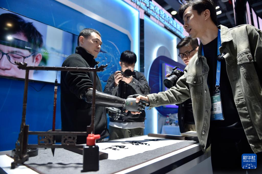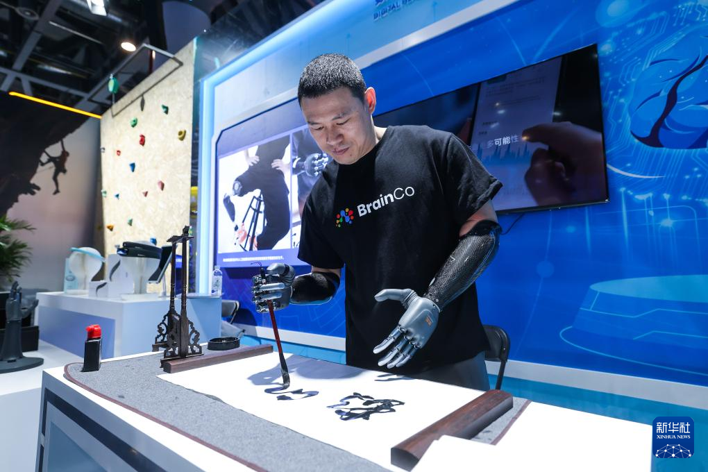 11月23日,在第二屆全球數(shù)字貿(mào)易博覽會(huì)上,觀眾在前沿趨勢(shì)館體驗(yàn)與穿戴智能仿生手的參展人員握手。新華社記者劉嶺逸攝 新華社杭州11月26日電 在一個(gè)展館中布置的室內(nèi)攀巖墻上,一名右下肢截肢的人士靈巧展示攀巖技能。他使用的基于腦機(jī)接口技術(shù)的智能仿生腿,不僅幫助他恢復(fù)日常行走能力,就像室內(nèi)攀巖這種較高強(qiáng)度活動(dòng)也能輕松完成。 第二屆全球數(shù)字貿(mào)易博覽會(huì)23日至27日在杭州舉行。本屆博覽會(huì)上不僅有華為、阿斯利康、松下等國(guó)內(nèi)外企業(yè)展示制藥、人工智能、智能制造等領(lǐng)域的新技術(shù)和新應(yīng)用,像強(qiáng)腦科技有限公司這樣專注腦機(jī)接口技術(shù)的公司也備受關(guān)注。 腦機(jī)接口經(jīng)過國(guó)內(nèi)外科研團(tuán)隊(duì)多年開發(fā),已取得不少進(jìn)展,目前有兩大技術(shù)路徑。美國(guó)企業(yè)家埃隆·馬斯克旗下的腦機(jī)接口公司“神經(jīng)連接”專注于侵入式腦機(jī)接口技術(shù),探索帕金森、重度癱瘓等疾病的治療;強(qiáng)腦科技等一些企業(yè)則專注于挖掘非侵入式腦機(jī)接口技術(shù)的應(yīng)用。 在強(qiáng)腦科技展位上展示室內(nèi)攀巖能力的林國(guó)秋告訴記者,他小時(shí)候因意外受傷而右下肢截肢,此前使用過很多國(guó)際品牌的假肢,但效果一般。后來,他有機(jī)會(huì)嘗試強(qiáng)腦科技開發(fā)的智能仿生腿,并加入這家公司成為產(chǎn)品體驗(yàn)官,與研究人員一起開發(fā)產(chǎn)品。 林國(guó)秋說,他使用這款基于非侵入式腦機(jī)接口技術(shù)的智能仿生腿產(chǎn)品已經(jīng)3年了,不但恢復(fù)了正常行走能力,熱愛運(yùn)動(dòng)的他還考取了健身教練證,經(jīng)常參加室內(nèi)攀巖運(yùn)動(dòng)。智能仿生腿一次充電可持續(xù)使用數(shù)天,已經(jīng)有計(jì)劃近期推向市場(chǎng)。 據(jù)強(qiáng)腦科技介紹,這款智能仿生腿可以通過傳感器實(shí)時(shí)采集數(shù)據(jù),經(jīng)算法處理后轉(zhuǎn)化為指令,控制產(chǎn)品的液壓系統(tǒng),從而能針對(duì)使用者的運(yùn)動(dòng)狀況進(jìn)行動(dòng)態(tài)的實(shí)時(shí)適配,滿足下肢截肢人士在日常生活場(chǎng)景中所需的動(dòng)作自由度,讓他們可以像控制自己的腿一樣控制智能仿生腿自由行走。 在展位現(xiàn)場(chǎng),另一名上肢截肢的人士在使用強(qiáng)腦科技推出的智能仿生手。這也是基于非侵入式腦機(jī)接口技術(shù)的產(chǎn)品。使用者利用智能仿生手不但可輕松取物,還能寫毛筆字。