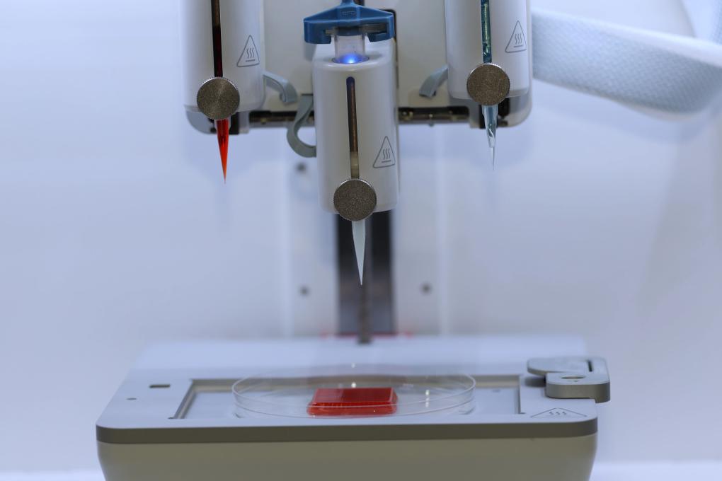在陣陣規(guī)律的“打印”聲中,裝有紅色和白色“生物墨水”的打印噴頭來回移動,白色托盤里方塊形狀的“豬肉”逐漸變厚,色澤誘人……走進南京農(nóng)業(yè)大學肉品質(zhì)量控制與新資源創(chuàng)制全國重點實驗室,科研人員正在開展3D生物打印細胞培養(yǎng)肉研究。