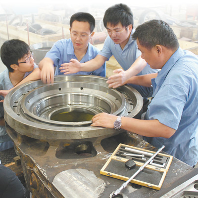 研發(fā)人員在討論新產(chǎn)品裝配。中國煤炭科工集團供圖